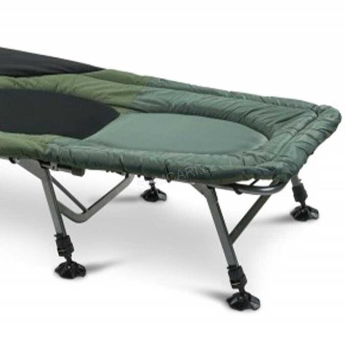 Spěte jako doma! Lehátko kombinuje všechny výhody moderních osminohých rybářských lehátek, pokud jde o stabilitu, použitý materiál a výsledný komfort při ležení nebo spaní. Rám je navržen tak, aby byl téměř nezničitelný a nohy jsou vyrobeny ze čtvercových trubek, díky čemuž mají větší nosnost. Všech 8 nohou je plynule výškově nastavitelných a poskytují lehátku větší stabilitu.