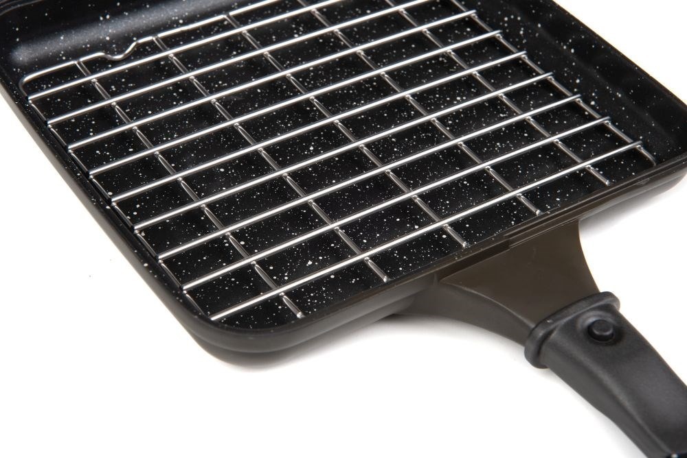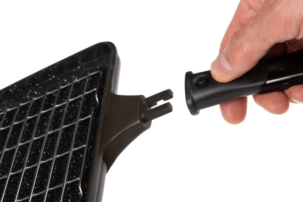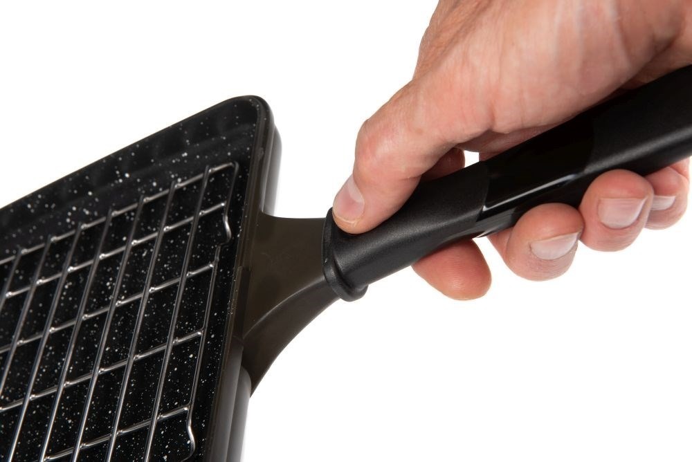 Víceúčelová pánev v khaki barvě s nepřilnavým mramorovaným povrchem odolným proti vysokým teplotám. Vyrobené tlakovým odléváním hliníku. Součástí je mřížka z nerezové oceli omezující kontaktu připravovaných sladkostí a pizzy s povrchem pánve, omezuje tak jejich připálení. Panty jsou rozebíratelné pánve je možné použít samostatně. Stiskem tlačítka odnímatelné rukojeti pro kompaktní velikost při skladován. Pouze pro použití na plynových vařičích. Dodávána v ochranném neoprenovém obalu. Cookware Multi-Pan – 198mm x 185mm x 45mm, hladká polovina – výška 22,5mm, grilovací polovina – výška 22,5mm.