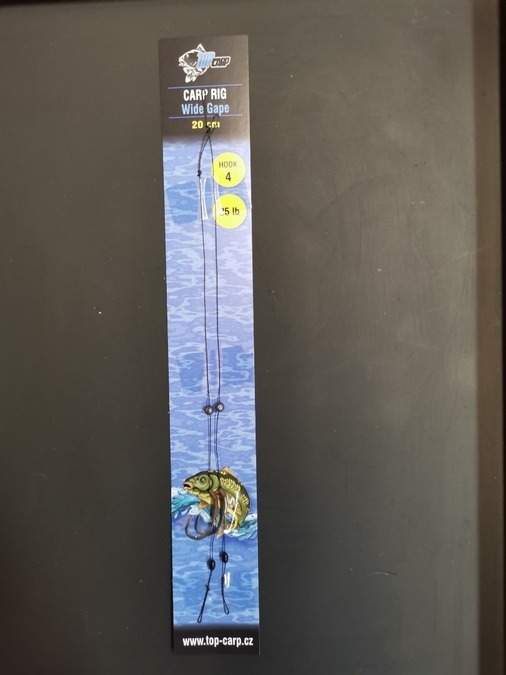 Kaprový návazec, vyrobený pomocí naší kvalitní měkké šňůrky CarpBraid. Návazec je osazen kvalitním jednoháčkem typu Wide Gape. Vlasový přívěs je osazen vlasovou zarážkou, proti posunu boilies. Háček je přesně vyúhlován pomocí smršťovací hadičky. Návazec je osazen bročkem, který slouží k správnému uvýznutí háčku v kapří tlamce. Délka vlasového přívěsu je cca. 4-5cm. Návazec je dostupný ve velikostech háčků 6, 4 a 2.